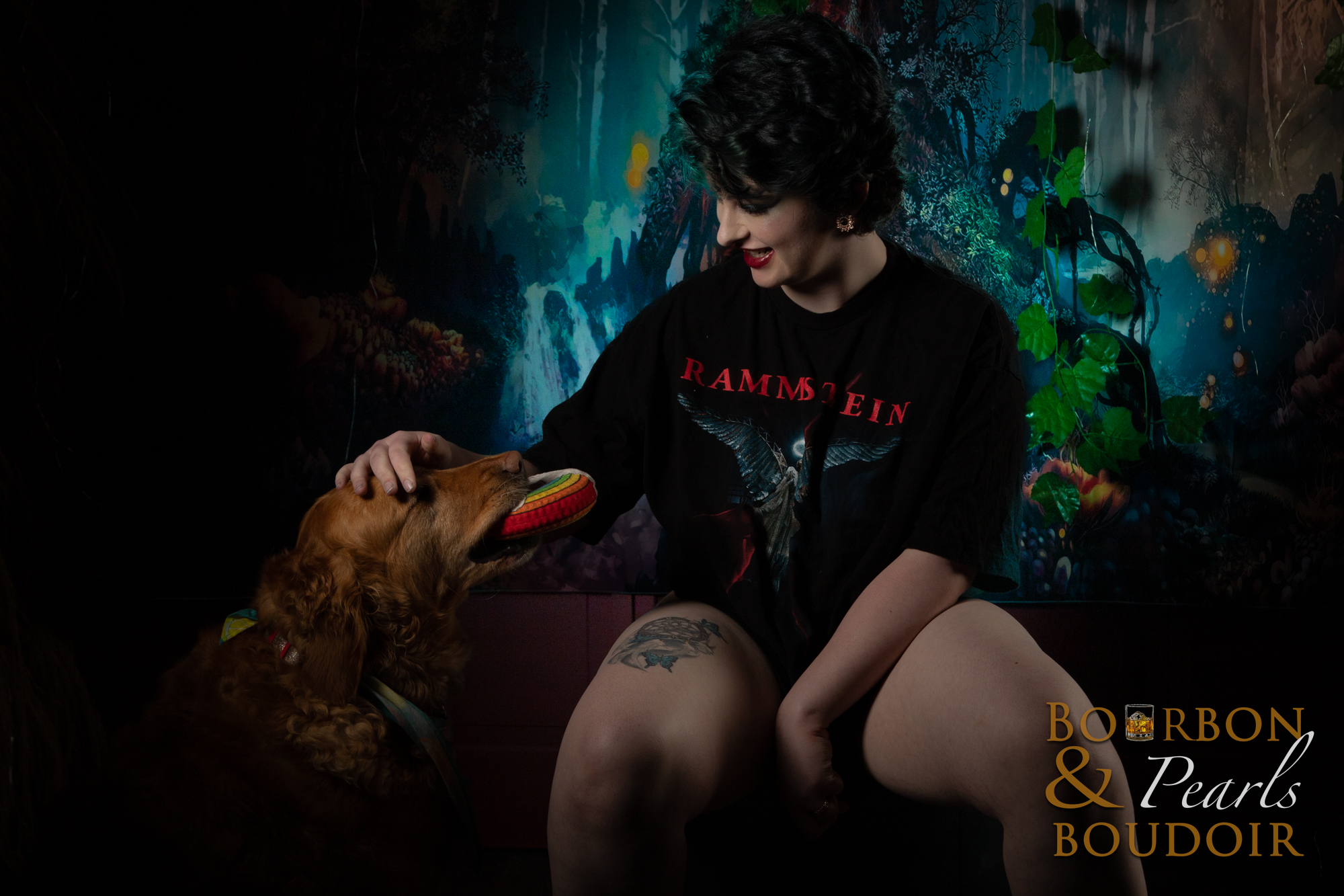 Our clients love our golden retriever so much that several have even included photos of them with Daisy in their orders! She’ll be around during your session to offer cuddles and be another friendly face in your boudoir experience.