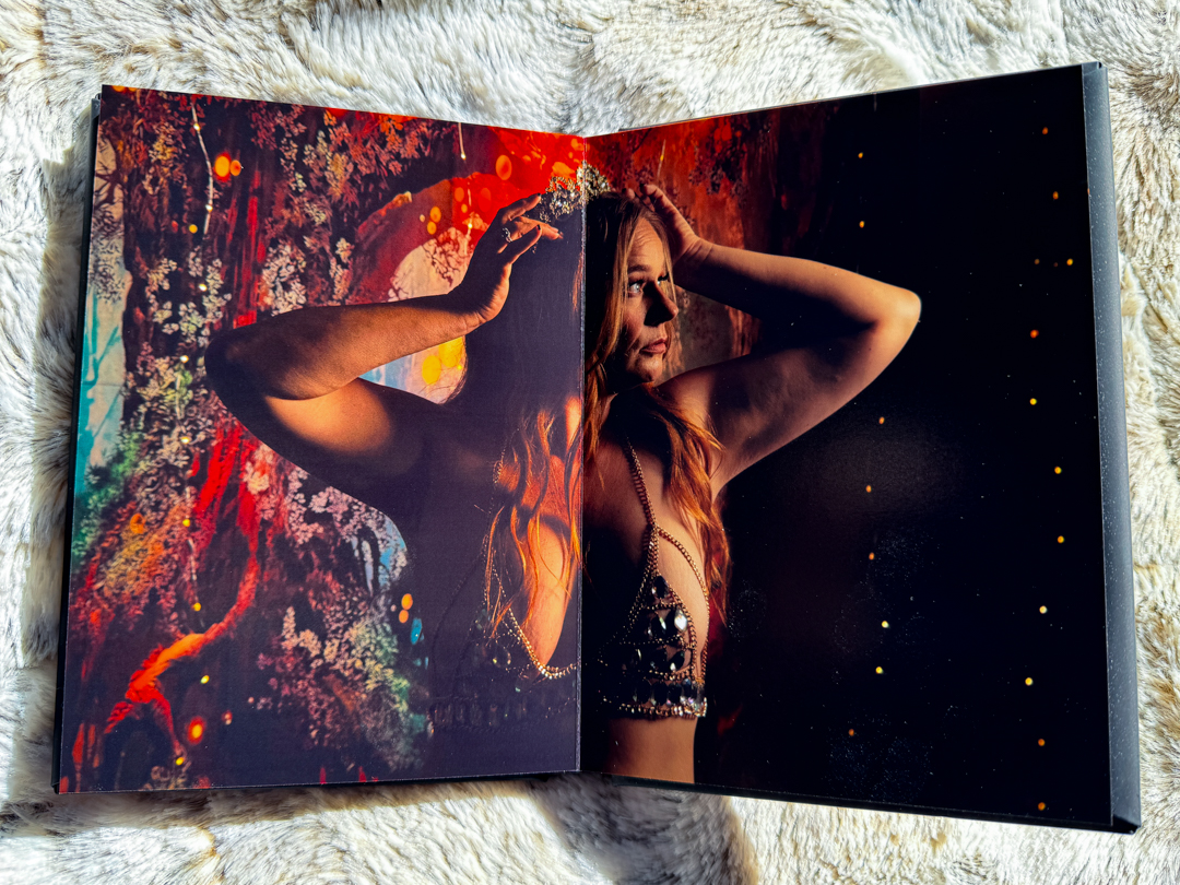 Together, we’ll curate your album post-session, selecting your favorite images to fill a 10-spread (20-page) layout. The design is as dynamic as your session, featuring breathtaking full-spread images that command attention across both pages, alongside artful arrangements of up to nine images per spread for a storytelling effect. Every detail is personalized, ensuring your album is a unique reflection of your journey, whether it’s a gift for a loved one or a tribute to your self-love.