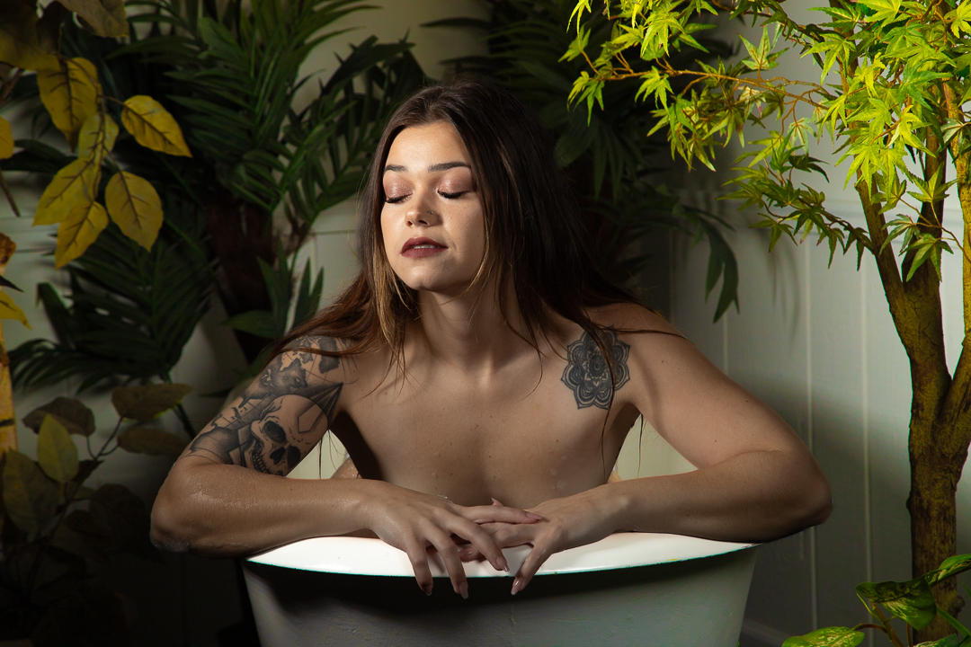 Picture yourself stepping into the warm, inviting waters of the vintage tub, surrounded by lush, towering plants that evoke the serene allure of a rainforest retreat. Whether you choose to embrace your confidence in delicate lingerie, a flowing silk robe, or the empowering freedom of nudity, this setting is yours to make your own.
