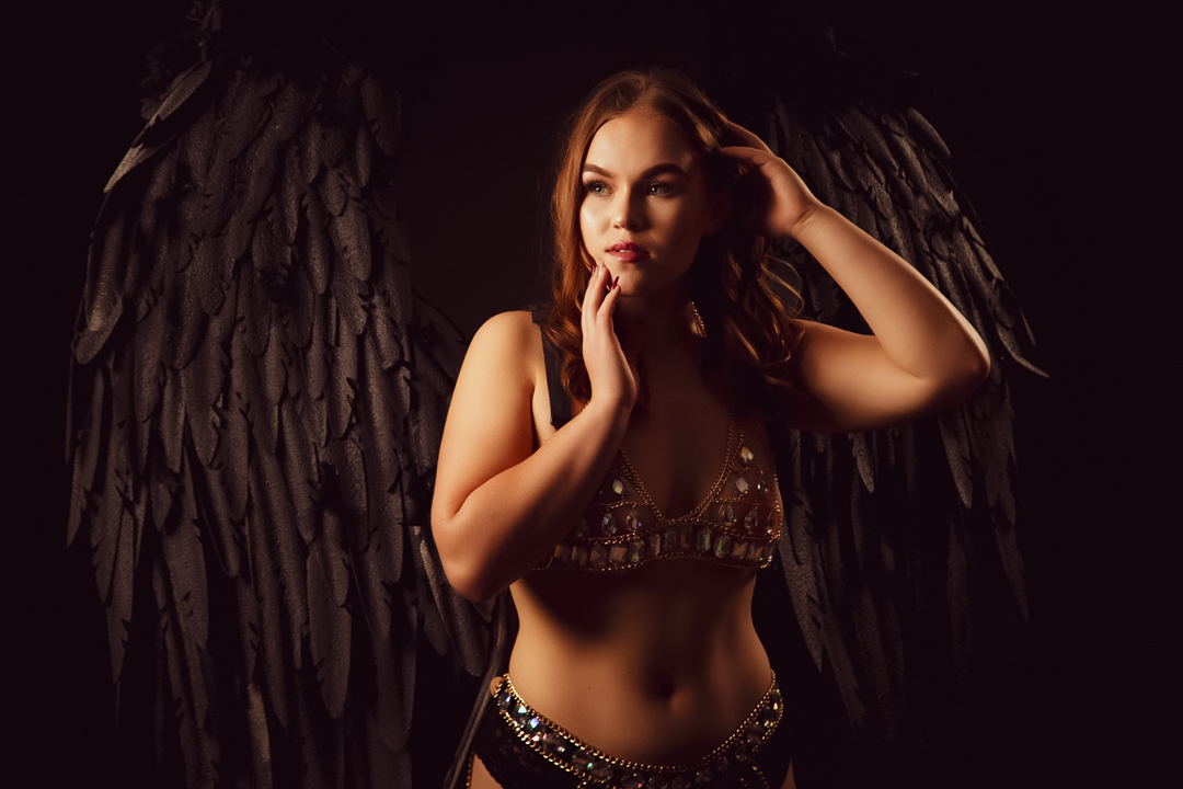 Imagine yourself adorned with these majestic wings, their feathers framing your form as we capture breathtaking portraits. Zoomed-in shots highlight your captivating face and décolletage, accentuating your confidence and allure with soft, flattering angles. For a dramatic flourish, full-body poses showcase the wings’ grandeur, enhanced by creative lighting that casts a heavenly glow or sultry shadows, tailored to your vision.